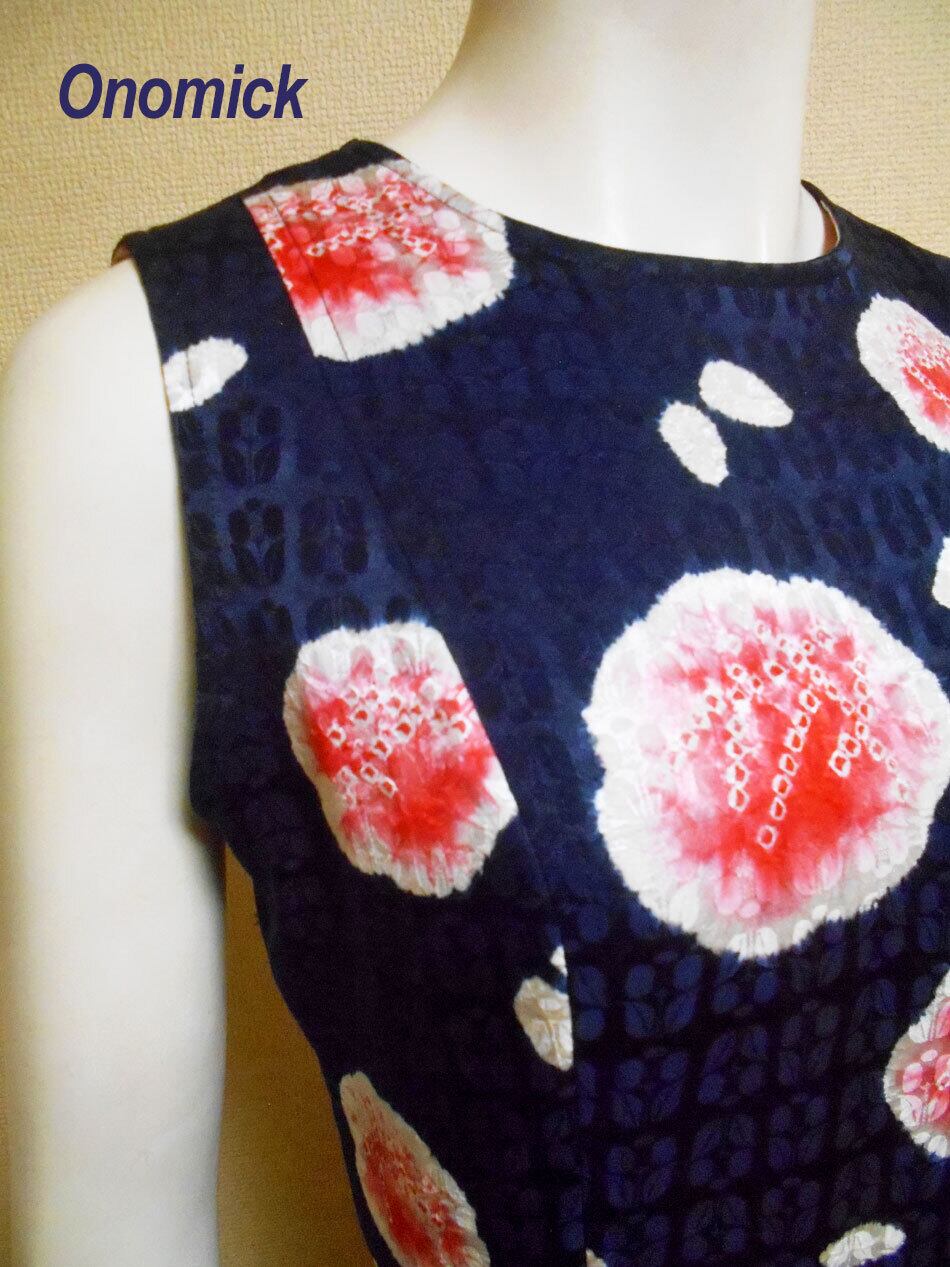 オノミックの作品は古い着物や羽織り、帯を再利用して仕立てています。年代相応の使用感や生地によっては薄ジミや折りジワ、焼けムラなどある場合が御座いますが、どうしても使わなければならない場合があることをご理解頂き、日本の古い素材をお楽しみ頂ければ幸いです。