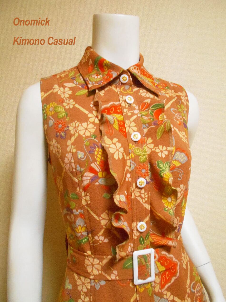 オノミックの作品は古い着物や羽織り、帯を再利用して仕立てています。年代相応の使用感や生地によっては薄ジミや折りジワ、焼けムラなどある場合が御座いますが、どうしても使わなければならない場合があることをご理解頂き、日本の古い素材をお楽しみ頂ければ幸いです。