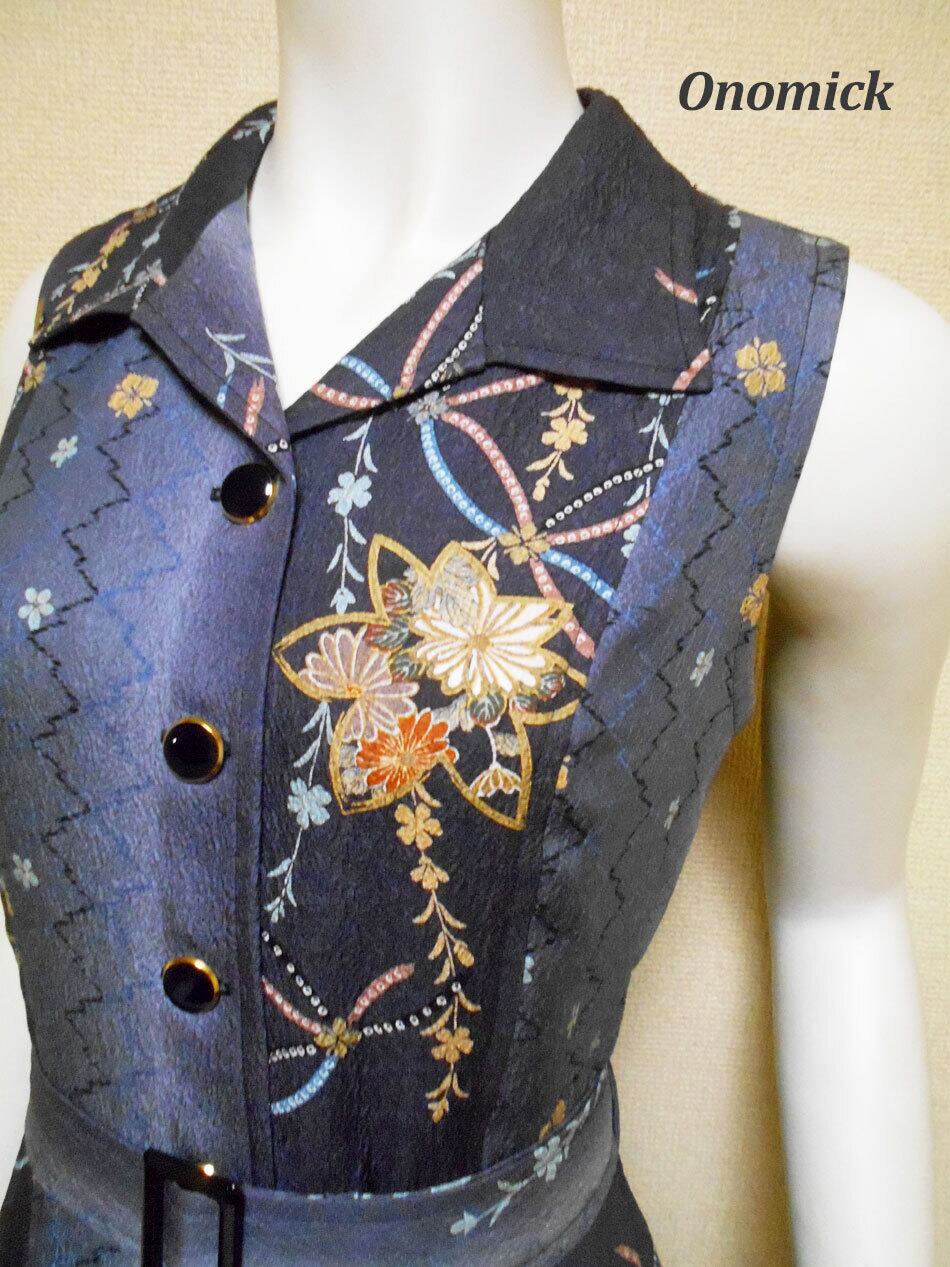 オノミックの作品は古い着物や羽織り、帯を再利用して仕立てています。年代相応の使用感や生地によっては薄ジミや折りジワ、焼けムラなどある場合が御座いますが、どうしても使わなければならない場合があることをご理解頂き、日本の古い素材をお楽しみ頂ければ幸いです。