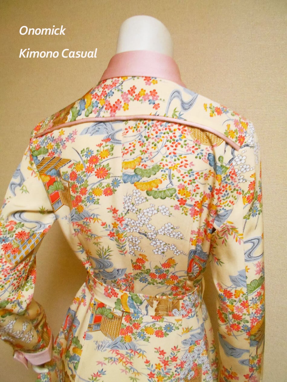 オノミックの作品は古い着物や羽織り、帯を再利用して仕立てています。年代相応の使用感や生地によっては薄ジミや折りジワ、焼けムラなどある場合が御座いますが、どうしても使わなければならない場合があることをご理解頂き、日本の古い素材をお楽しみ頂ければ幸いです。