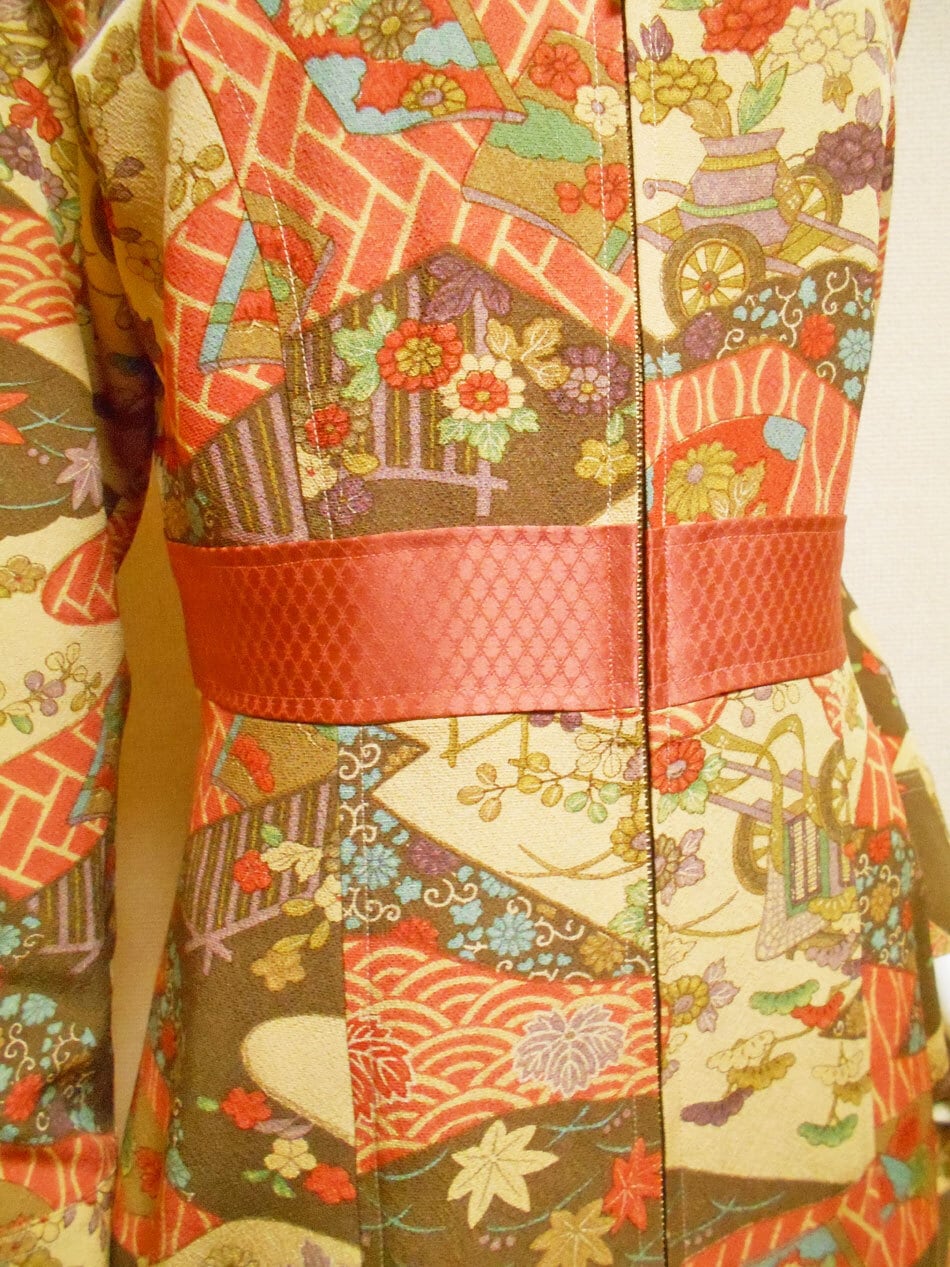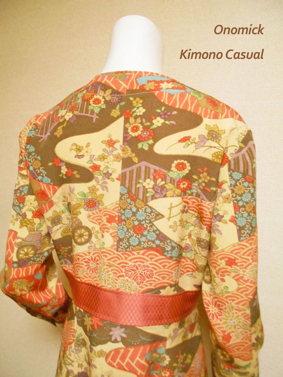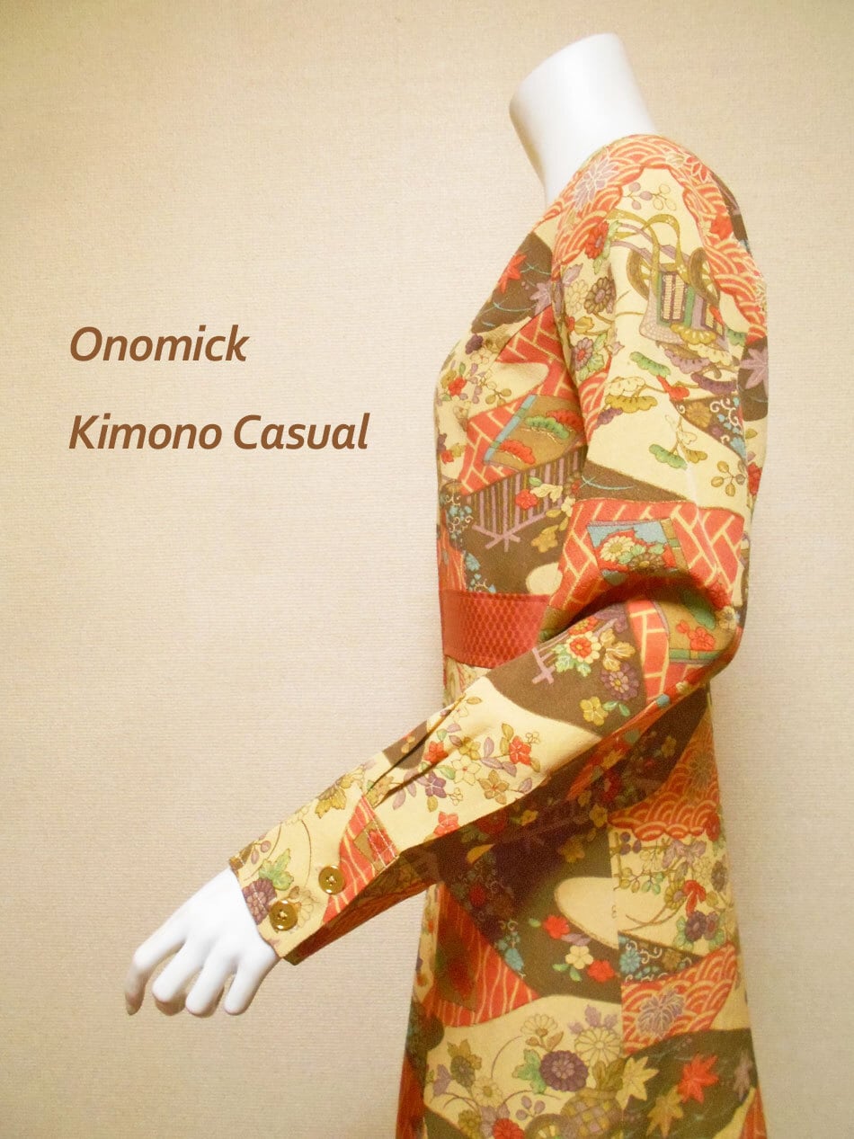 オノミックの作品は古い着物や羽織り、帯を再利用して仕立てています。年代相応の使用感や生地によっては薄ジミや折りジワ、焼けムラなどある場合が御座いますが、どうしても使わなければならない場合があることをご理解頂き、日本の古い素材をお楽しみ頂ければ幸いです。