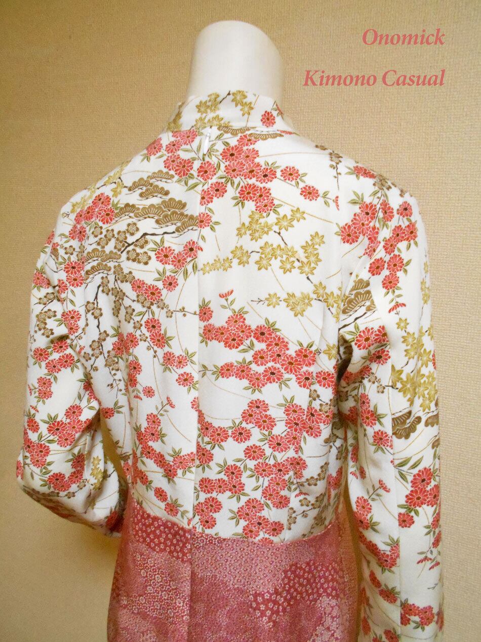 オノミックの作品は古い着物や羽織り、帯を再利用して仕立てています。年代相応の使用感や生地によっては薄ジミや折りジワ、焼けムラなどある場合が御座いますが、どうしても使わなければならない場合があることをご理解頂き、日本の古い素材をお楽しみ頂ければ幸いです。