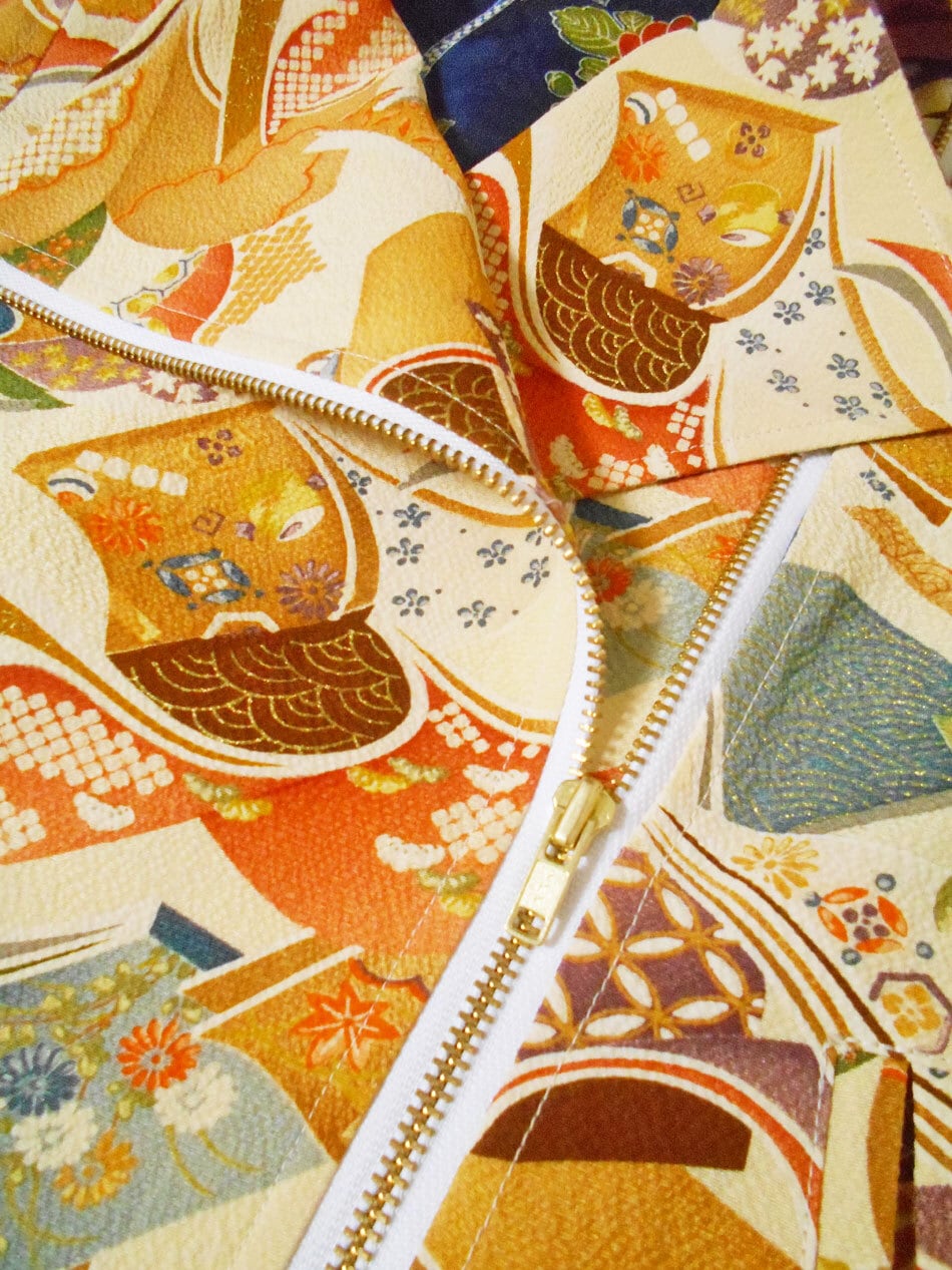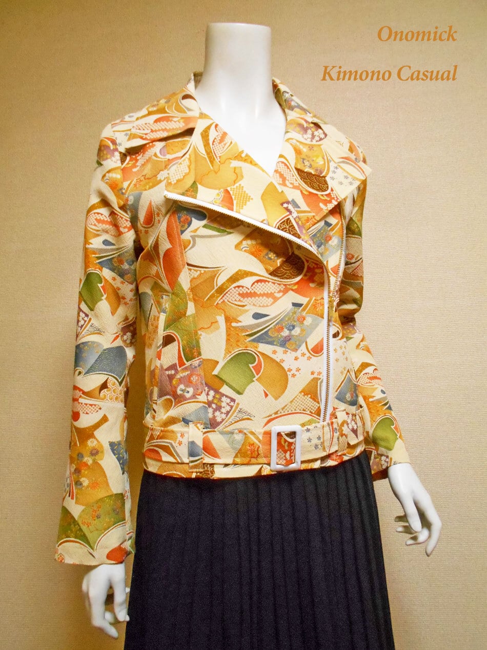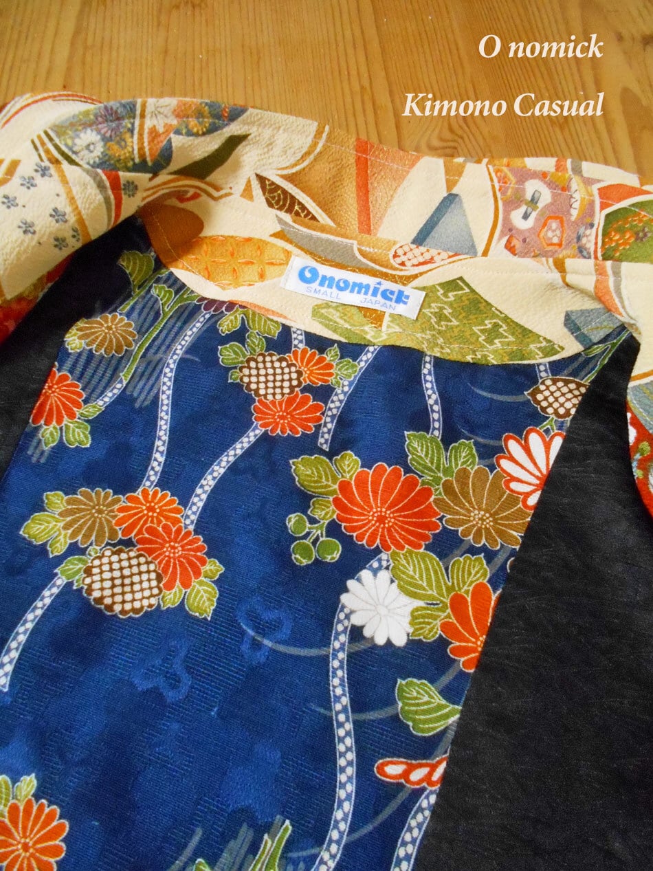 オノミックの作品は古い着物や羽織り、帯を再利用して仕立てています。年代相応の使用感や生地によっては薄ジミや折りジワ、焼けムラなどある場合が御座いますが、どうしても使わなければならない場合があることをご理解頂き、日本の古い素材をお楽しみ頂ければ幸いです。
