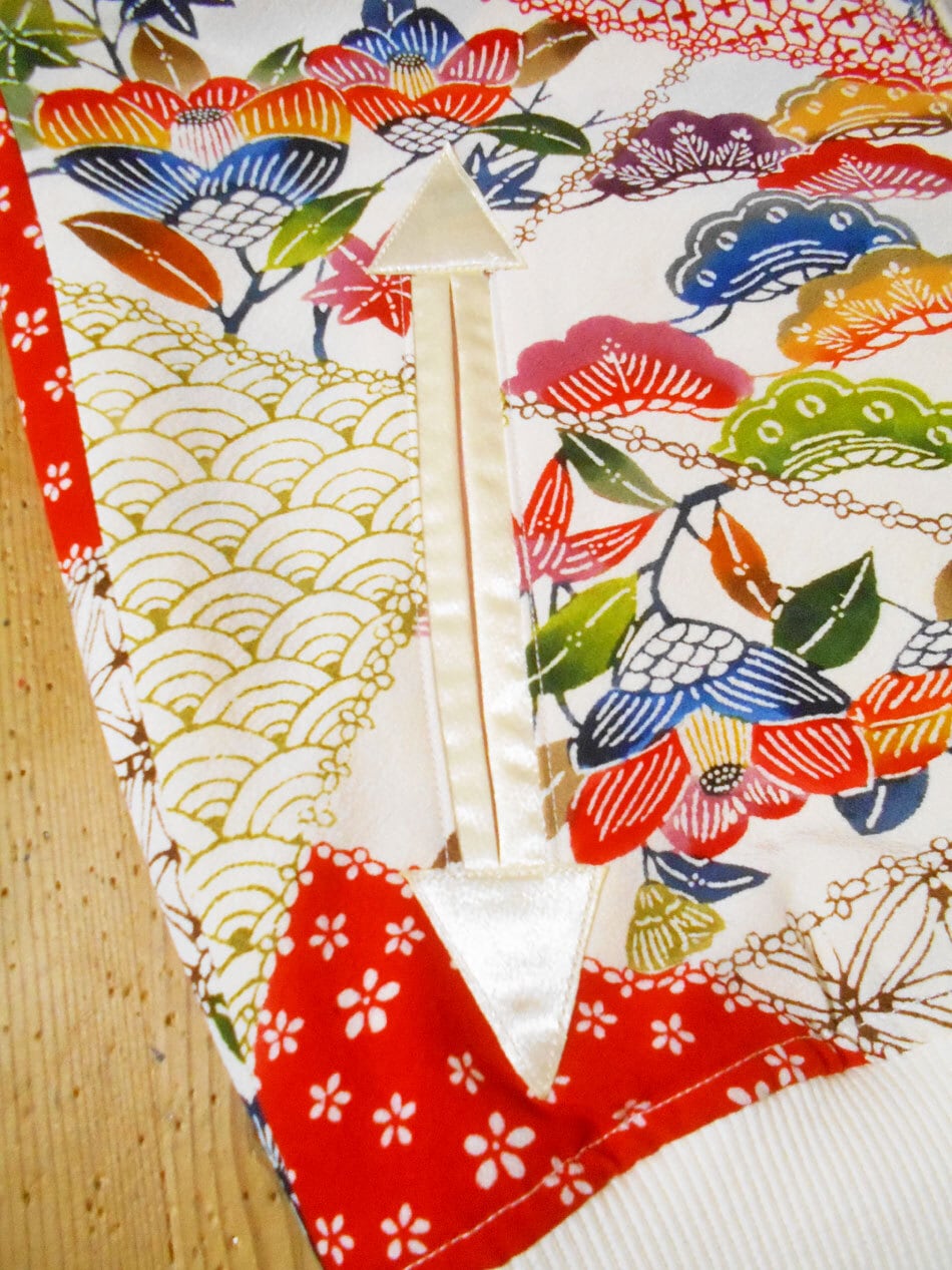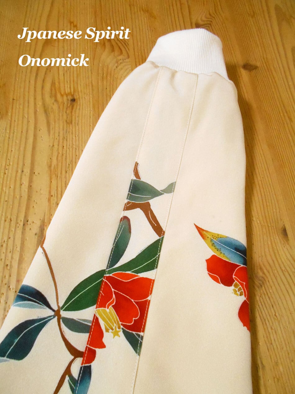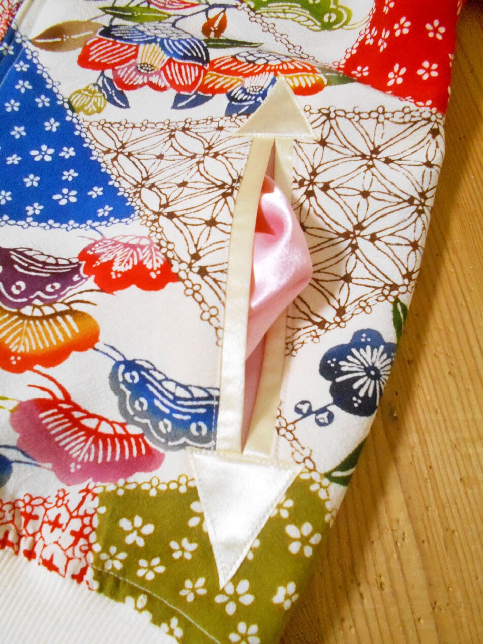 オノミックの作品は古い着物や羽織り、帯を再利用して仕立てています。年代相応の使用感や生地によっては薄ジミや折りジワ、焼けムラなどある場合が御座いますが、どうしても使わなければならない場合があることをご理解頂き、日本の古い素材をお楽しみ頂ければ幸いです。
