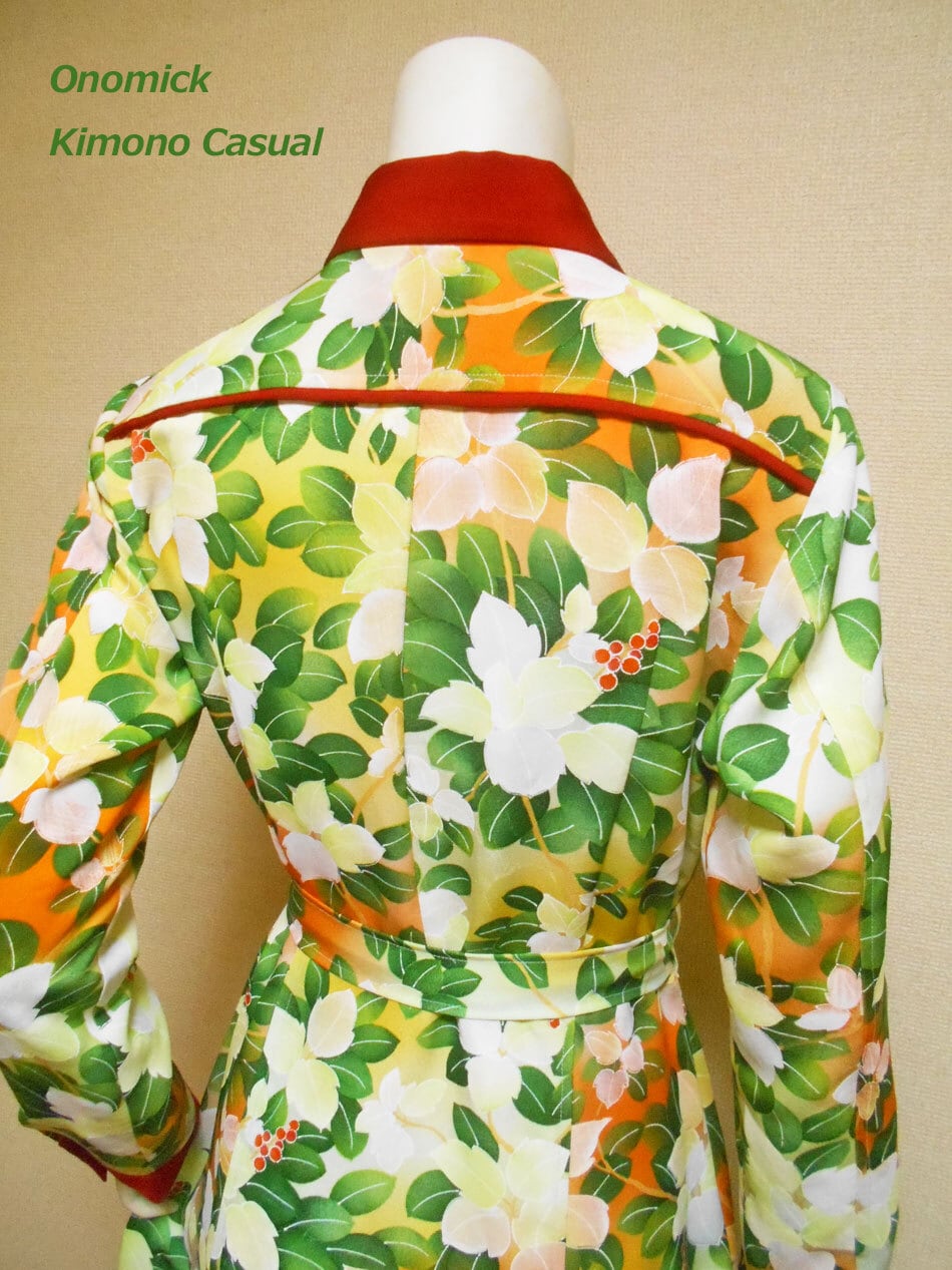 オノミックの作品は古い着物や羽織り、帯を再利用して仕立てています。年代相応の使用感や生地によっては薄ジミや折りジワ、焼けムラなどある場合が御座いますが、どうしても使わなければならない場合があることをご理解頂き、日本の古い素材をお楽しみ頂ければ幸いです。