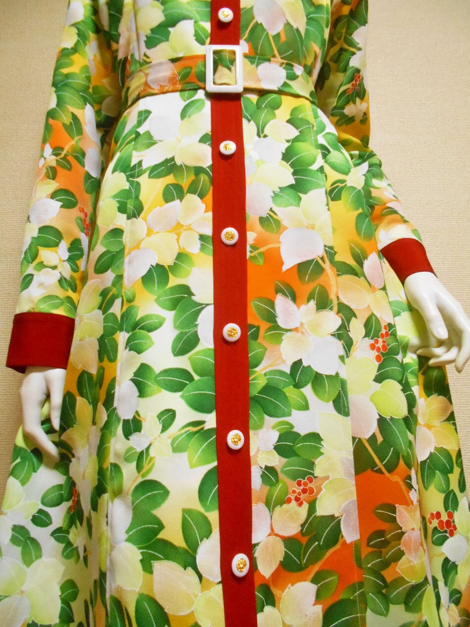 台襟・肩ヨーク・袖カフス・ウェストで切り替えたフレアスカートなど
