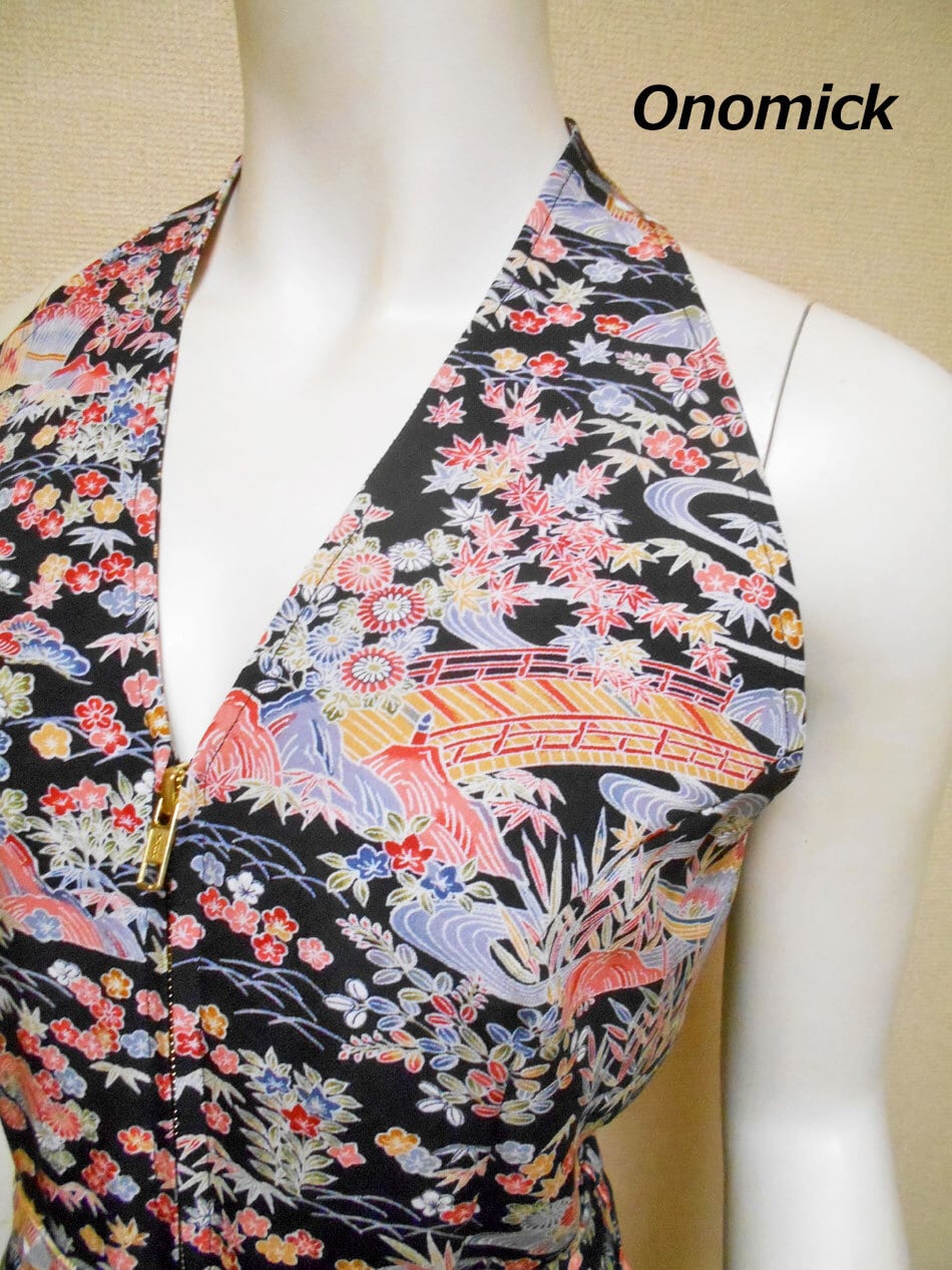 オノミックの作品は古い着物や羽織り、帯を再利用して仕立てています。年代相応の使用感や生地によっては薄ジミや折りジワ、焼けムラなどある場合が御座いますが、どうしても使わなければならない場合があることをご理解頂き、日本の古い素材をお楽しみ頂ければ幸いです。