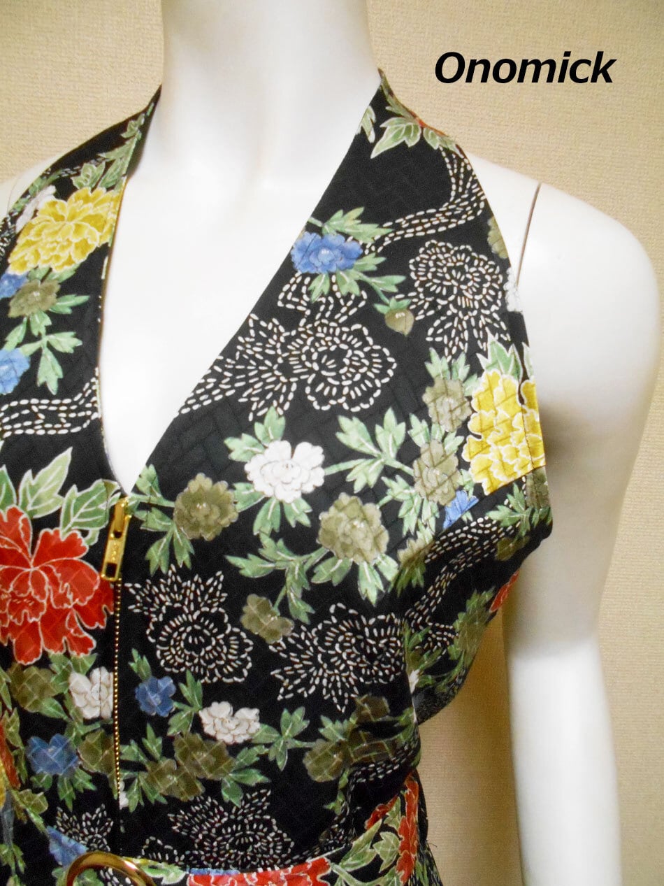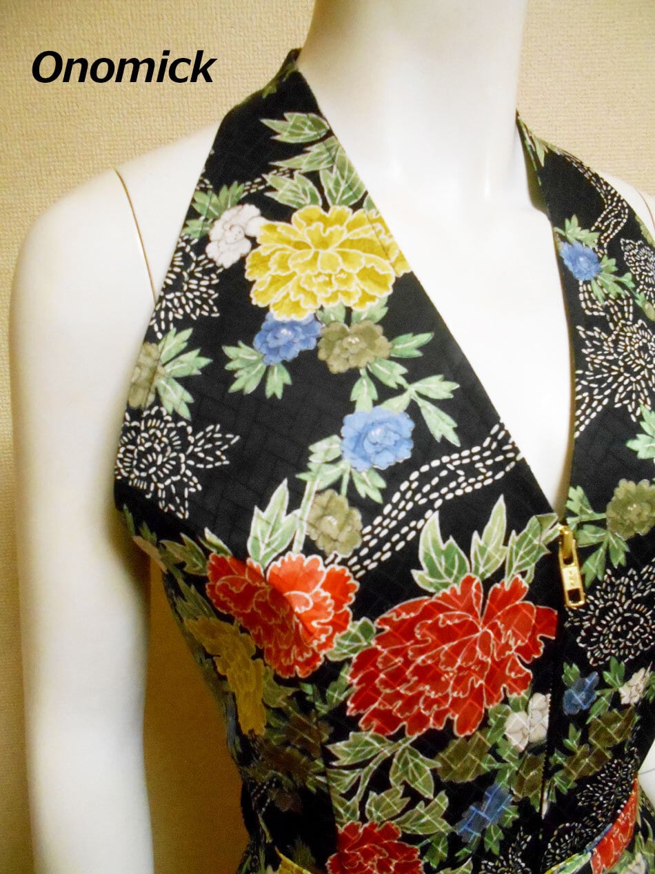 オノミックの作品は古い着物や羽織り、帯を再利用して仕立てています。年代相応の使用感や生地によっては薄ジミや折りジワ、焼けムラなどある場合が御座いますが、どうしても使わなければならない場合があることをご理解頂き、日本の古い素材をお楽しみ頂ければ幸いです。